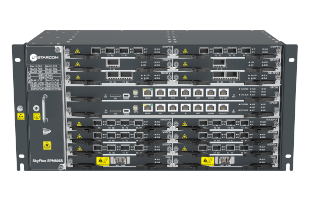SkyFlux SPN805S is a modular 5RU chassis-based platform designed for access and aggregation applications. The product supports 12 line card slots and 1+1 redundancy for major components including a switching fabric/controller and a power supply, all implemented in a small footprint chassis suitable for installation in ETSI 300mm depth racks, making it an excellent solution for 5G RAN applications. The product provides 640Gbps switching capacity and a variety of interfaces including 1GE/10GE/25GE/50GE/100GE, and 50GE/100GE FlexE NNI.
