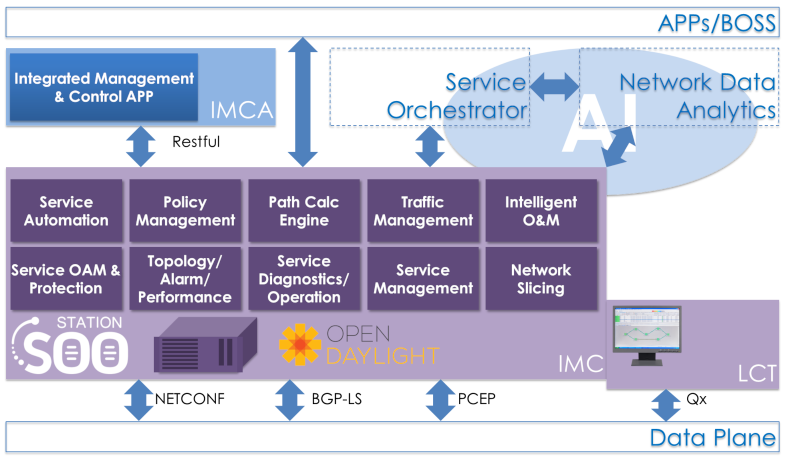 The SOO Station controller is built on the foundation of open-source SW platform OpenDaylight, and provides support of various Northbound Interfaces (NBI) including NetConf/YANG, PCEP, BGP-LS, Qx. The platform provides open and programmable environment that enables operators to build highly scalable, flexible networks that are easy to adapt to changing business needs.