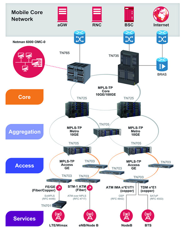 UTStarcom provides a full range of Packet Optical Transport products to efficiently address the mobile backhaul network needs at all levels: TN701A and TN703C/E for access, TN705 and TN725/E for aggregation, and TN735 and TN765 for Aggregation and Core.