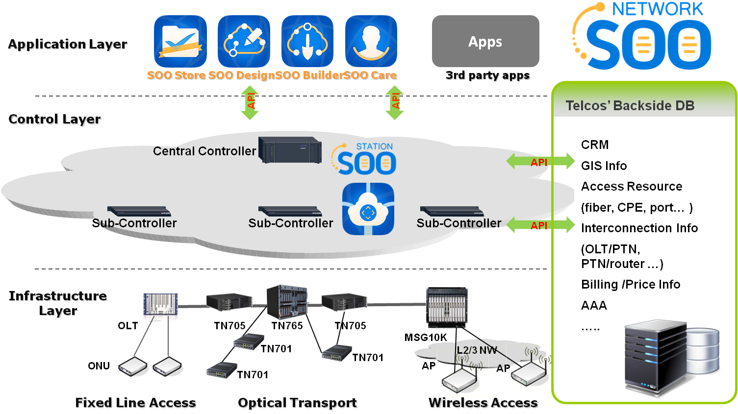 With UTStarcom’s SOO solution operators can deploy highly efficient and flexible packet optical transport and access infrastructure, and optimize utilization of existing network resources. SOO solution supports automated end-to-end service provisioning, bandwidth on demand, network design and optimization on a network-wide scale for a converged virtualized network which can incorporate UTStarcom’s packet optical transport solutions, broadband access products and integrate 3rd party equipment via Southbound API.